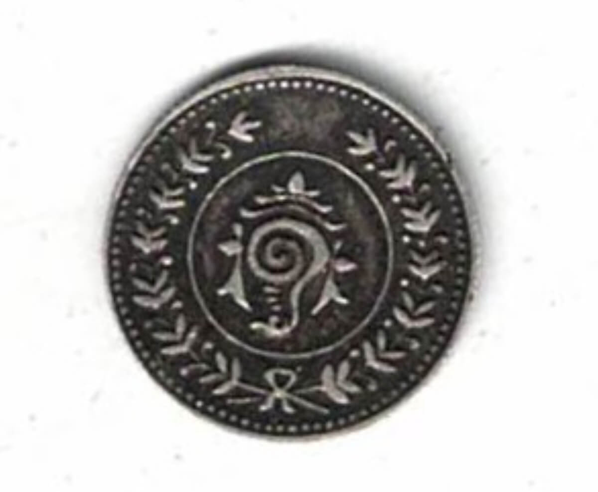 The obverse features a conch shells within circle. The reverse features date and value within circle of beads.