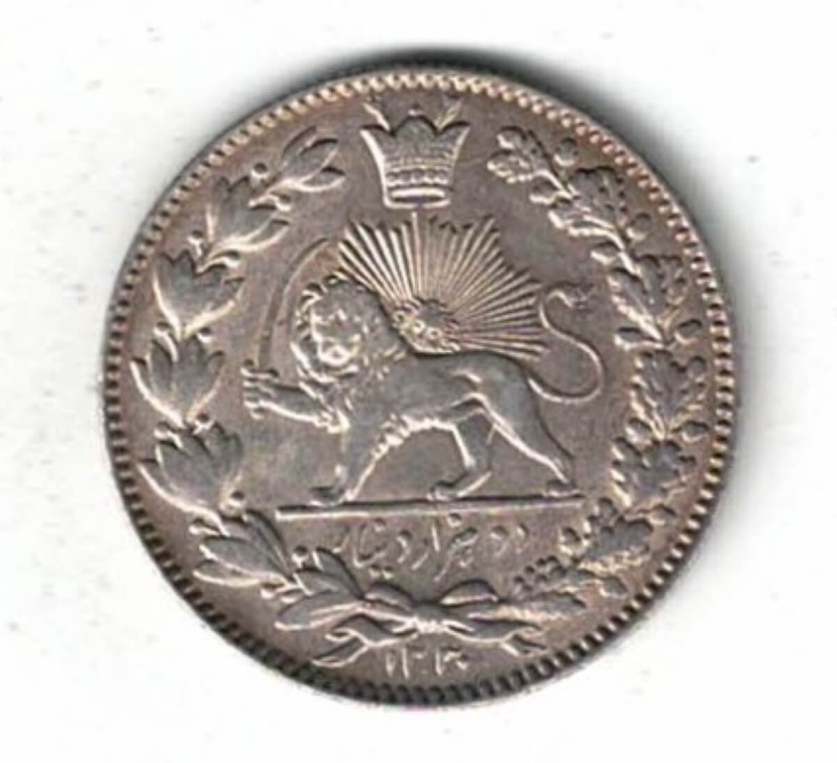 1330 (1912) Iran Silver Two Thousand Dinar Coin In Extremely Fine To Near Mint Condition.