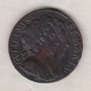 1694 William & Mary Copper Farthing Coin In Near Very Fine Condition.