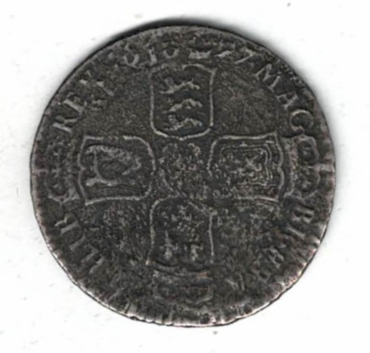 The 1697 B Halfcrown was a coin struck in 0.925 silver in Bristol. The Obverse features the laureate and draped bust of King William III facing right, with legend around. The reverse is completed with the crowned cruciform shields around central lion rampant, divided date above, with legend around.