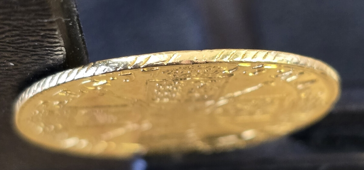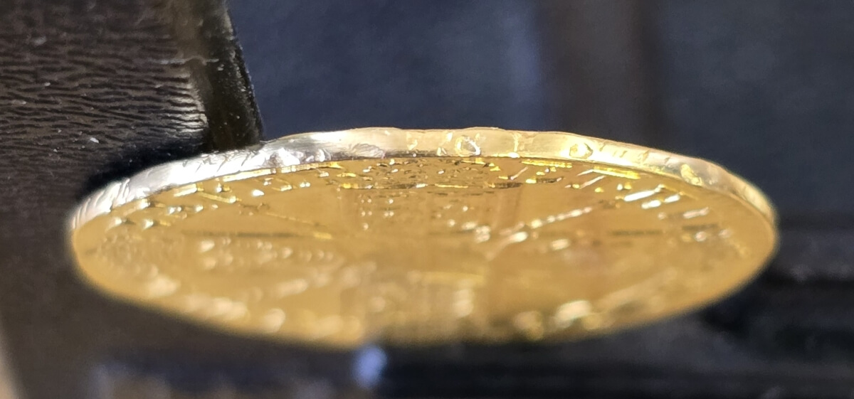 This Gold Full Guinea coin weighs approx. 8.27 grams of 0.917 Gold.