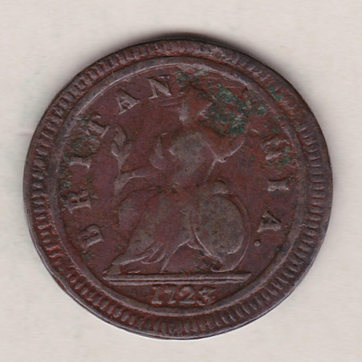 1723 King George I Copper Halfpenny Coin In Good Fine Or Better Condition.