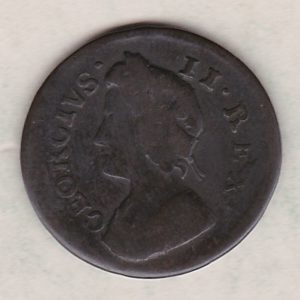 1736 King George II Copper Farthing Coin In Fine Or Better Condition.