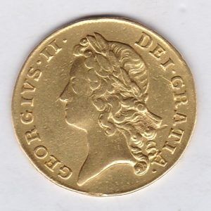 1739 King George II Gold Two Guinea Coin In Near Very Fine To Very Fine Condition.