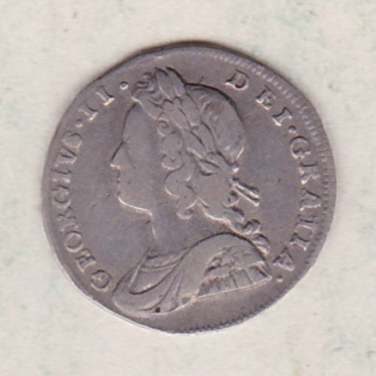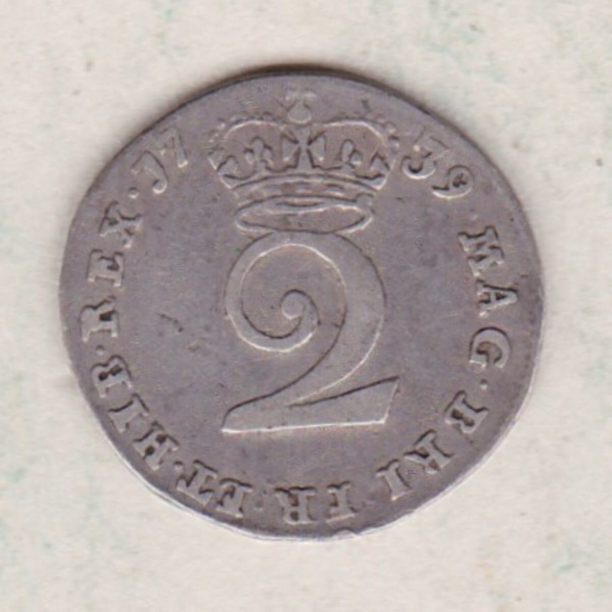 The 1739 maundy twopence is a coin struck in 0.925 silver. The Obverse features the young laureate and draped bust of King George II facing left, with legend around. The reverse features a central denomination below a crown dividing the date, with legend around.