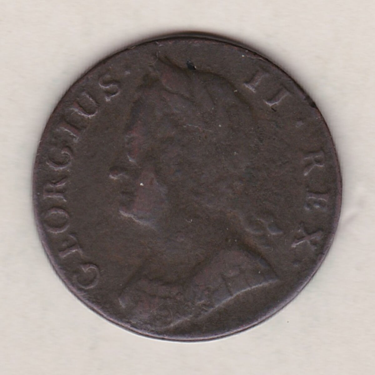 1740 King George II Copper Halfpenny Coin In Good Fine Or Better Condition.