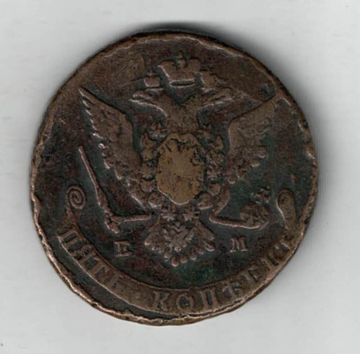 1769 E.M. Russia Catherine II Copper Five Kopecks Coin In Used Condition.