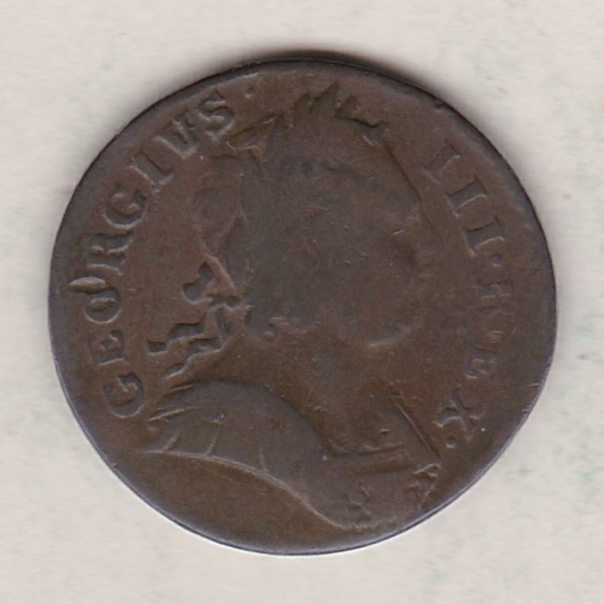1774 King George III Copper Farthing Coin In Good Fine Condition.