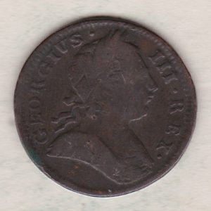 1775 King George III Copper Farthing Coin In Good Fine Condition.