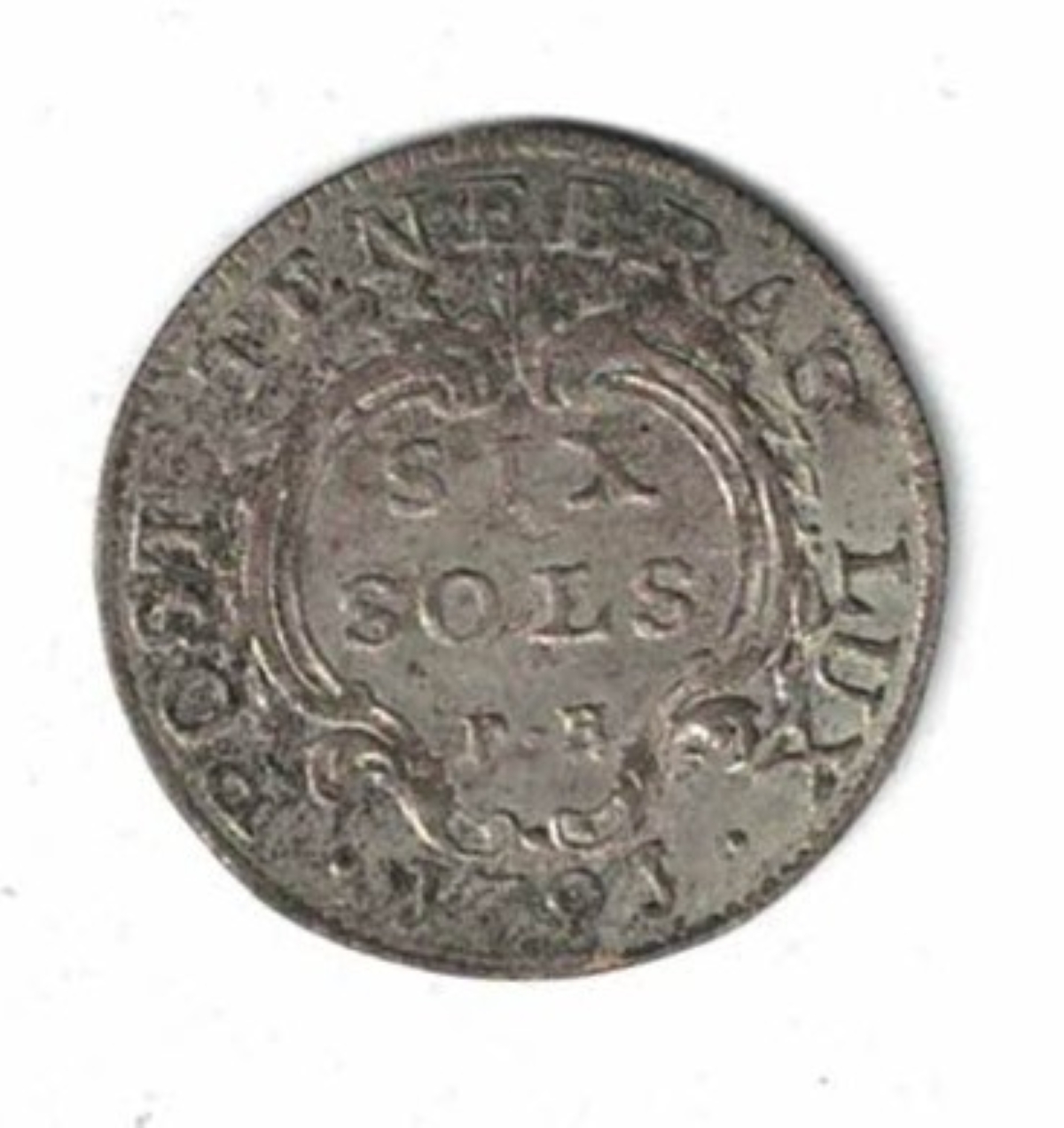 1791 Switzerland Geneva KM82 Billon Six Sols Coin in Extremely Fine Condition.