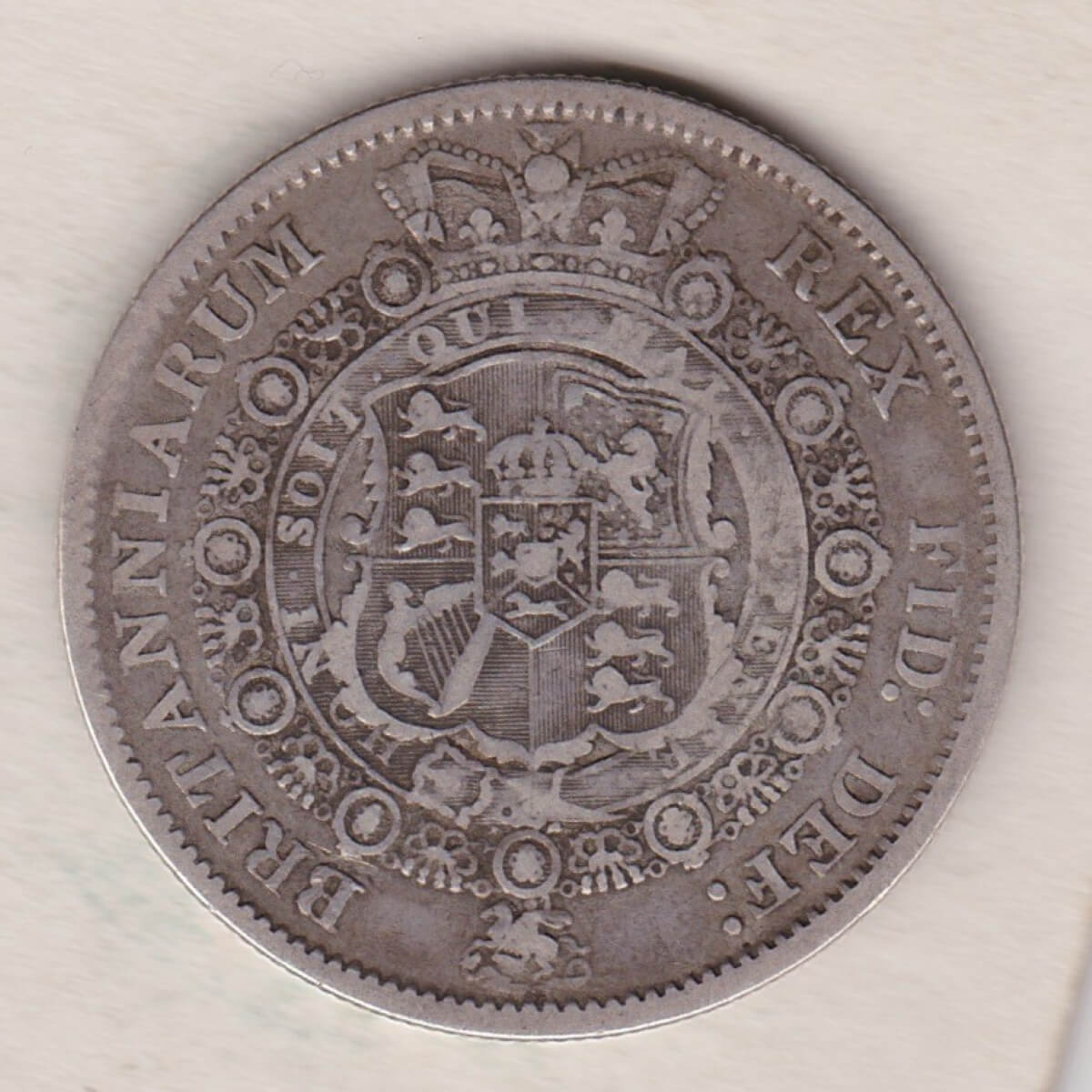 The 1816 Halfrown is a coin struck in 0.925 silver by the Royal Mint. The obverse features the large laureate bust facing right, also know as the ‘bull head’ with legend around, and date below. The reverse features a crowned Garter and ornate Royal shield of arms overlaid with smaller shield, with legend around.