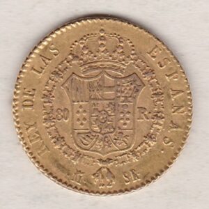 The Spanish 80 Reales coins were struck in 0.875 Gold and weigh approx. 6.77 grams.