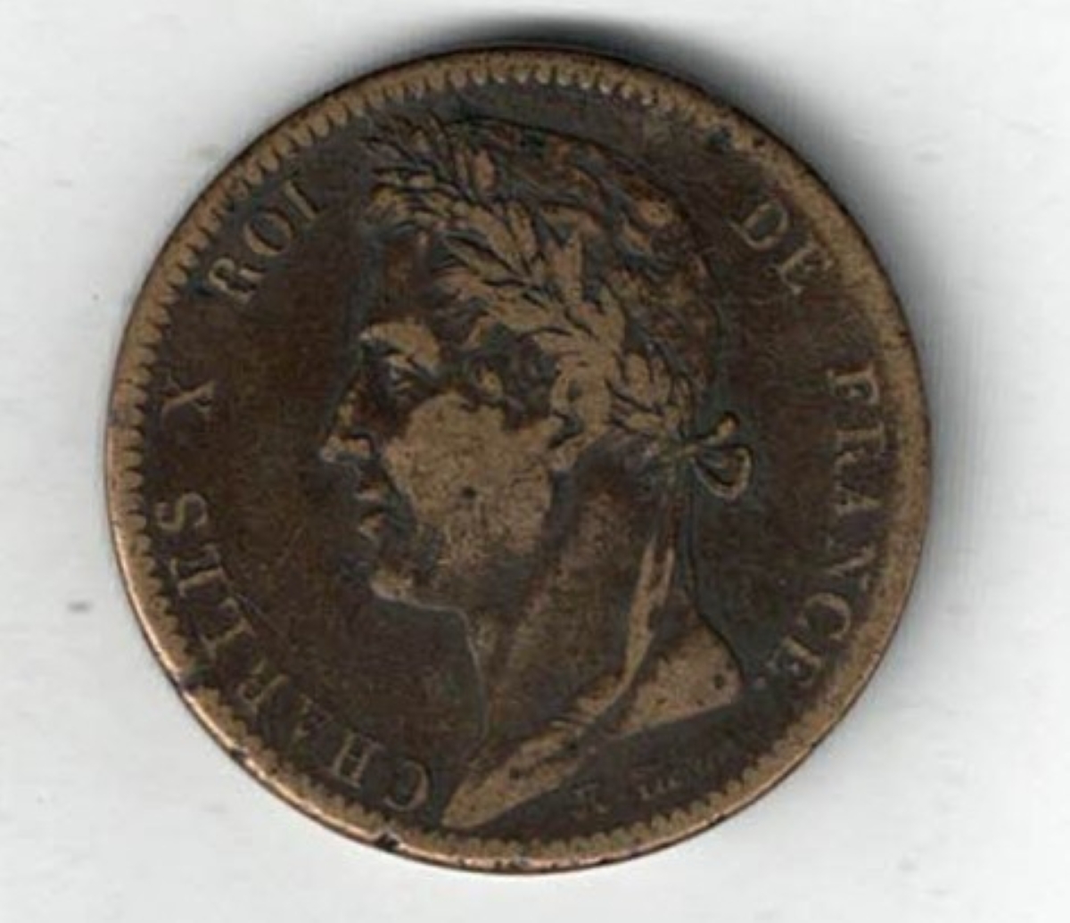 The obverse features the head of Charles X facing left. The reverse features the value with wreath and date.