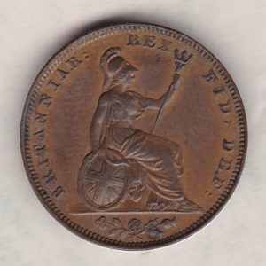 1826 King George IV Copper Farthing Coin In Extremely Fine Condition.