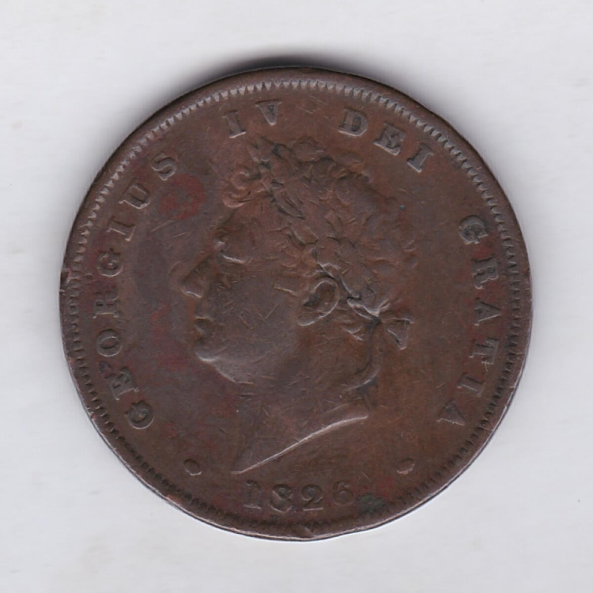 1826 King George IV Copper Penny Coin In Fine Or Better Condition.