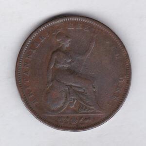 The 1826 penny was struck in copper by the Royal Mint. The obverse side of the coin Features the laureate portrait of King George IV facing left, with legend around, and the date 1826 below. The reverse side of the coin depicts Britannia seated facing right holding a trident and resting her right hand on a shield. A rose, thistle, and shamrock are united in the exergue.