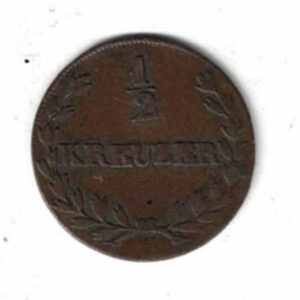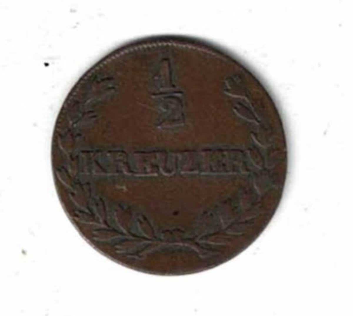 1826 Germany Grand Duchy Of Baden Copper Half Kreuzer Coin In Good Fine Condition.