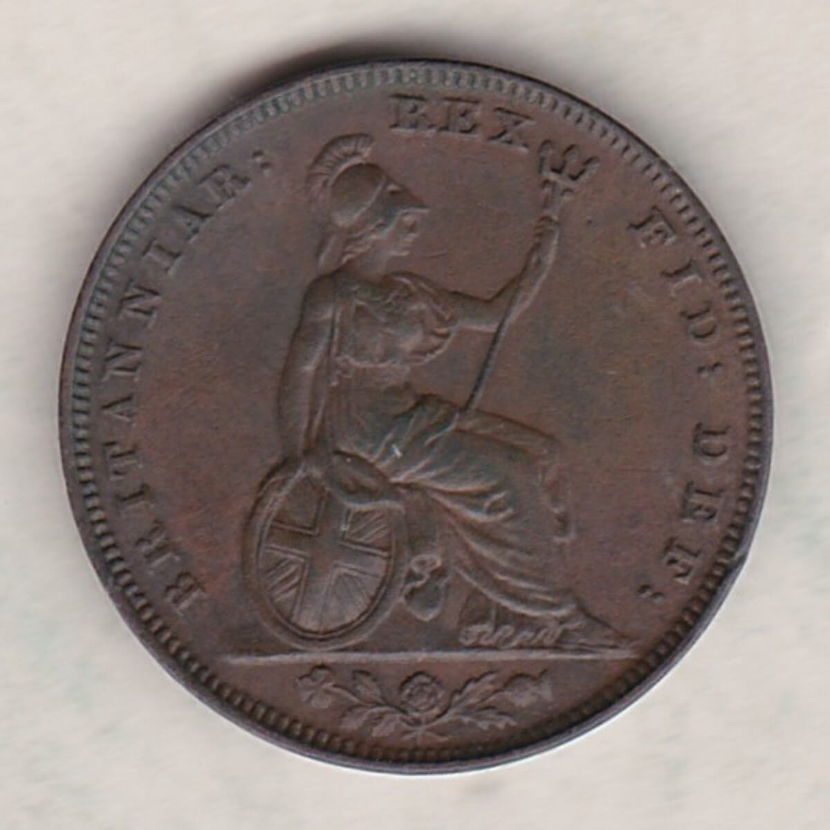 1828 King George IV Copper Farthing Coin In Extremely Fine Or Better Condition.