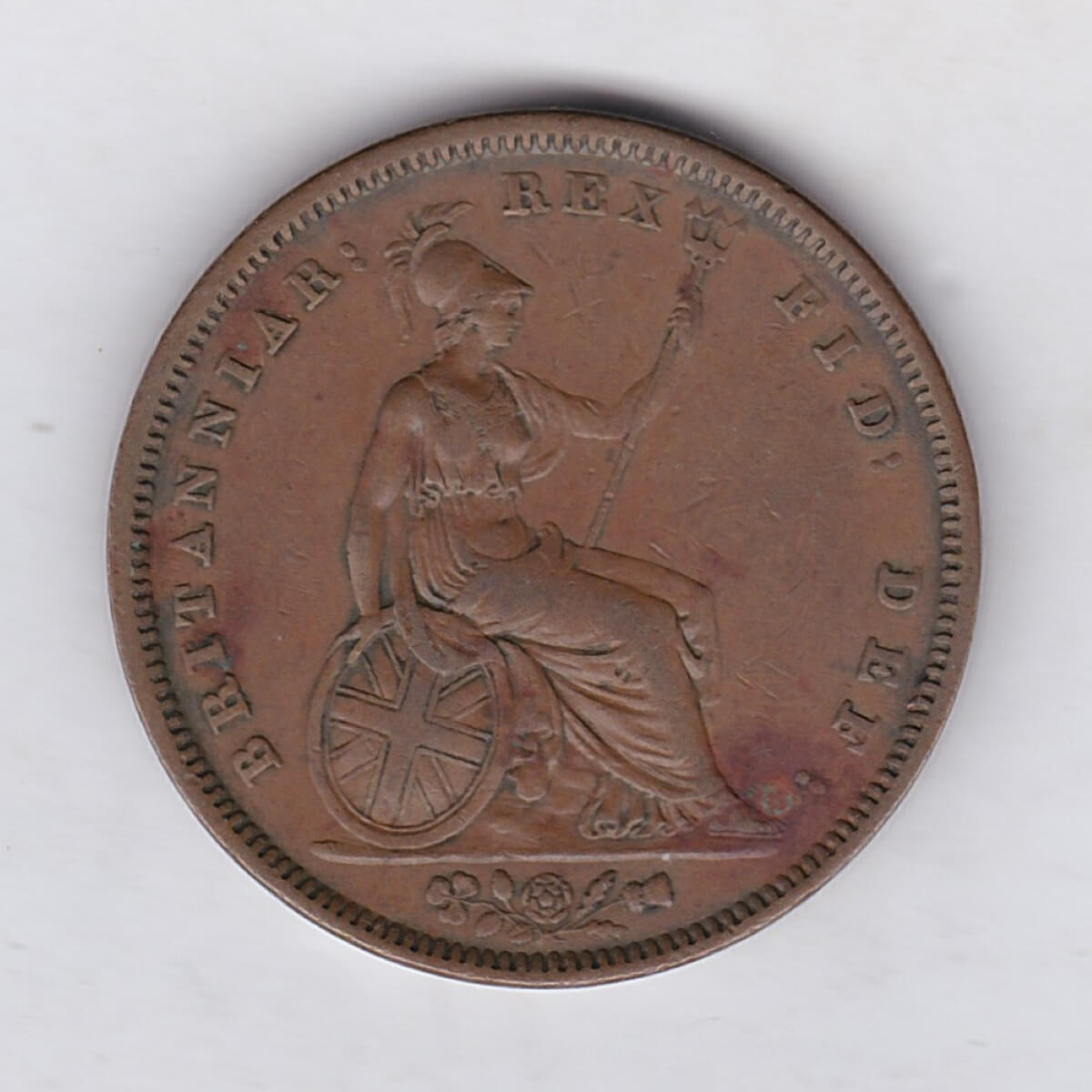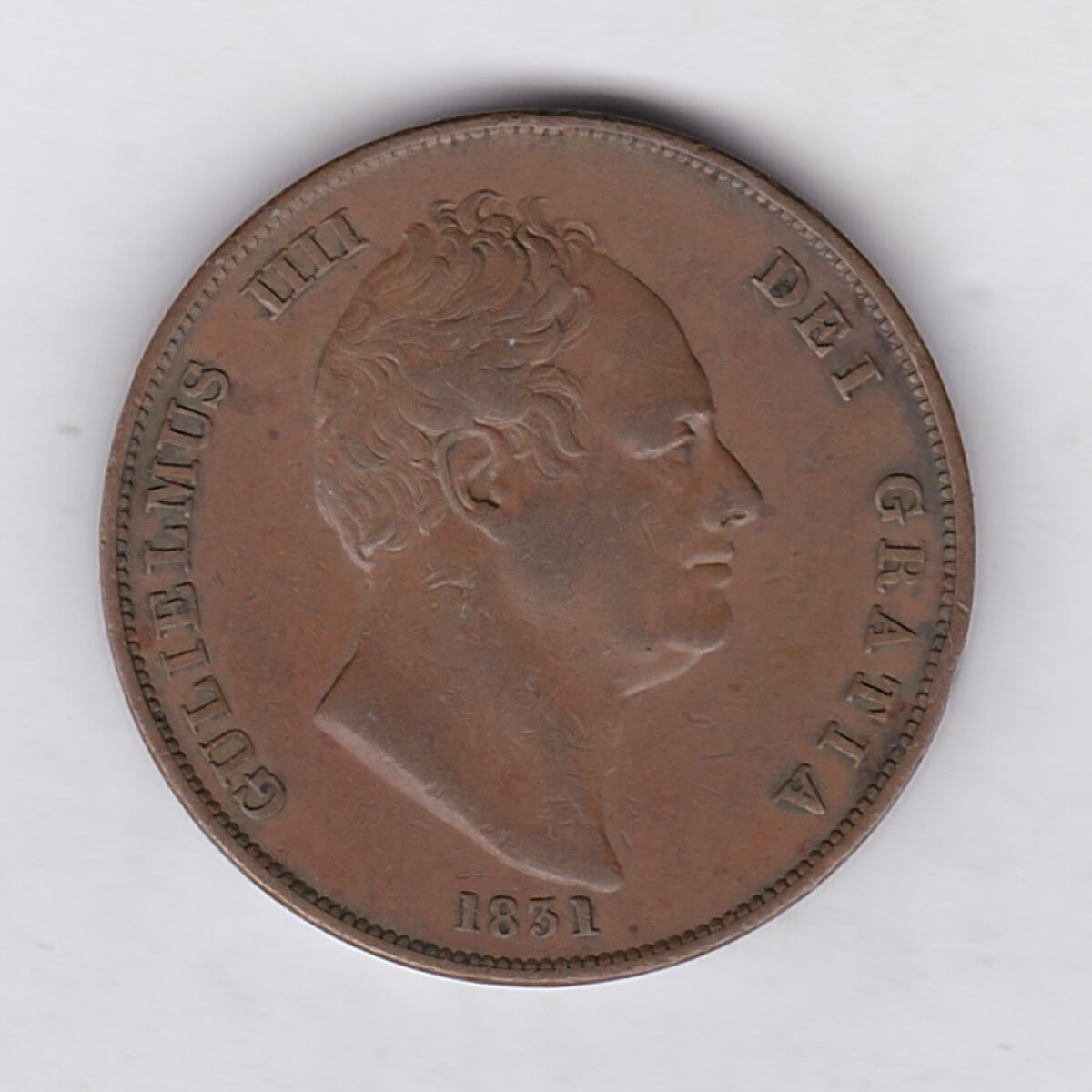 1831 King William IV Copper Penny Coin In Very Fine Condition.
