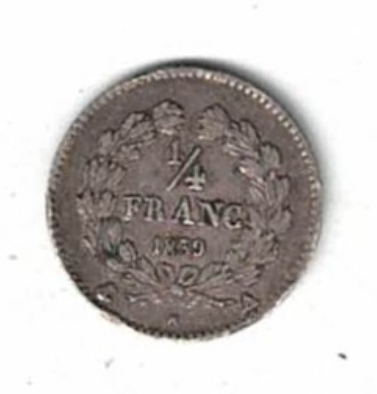 The 1839 A silver Quarter Franc coin was struck in Paris, France and had a mintage of 1 ,179, 772.