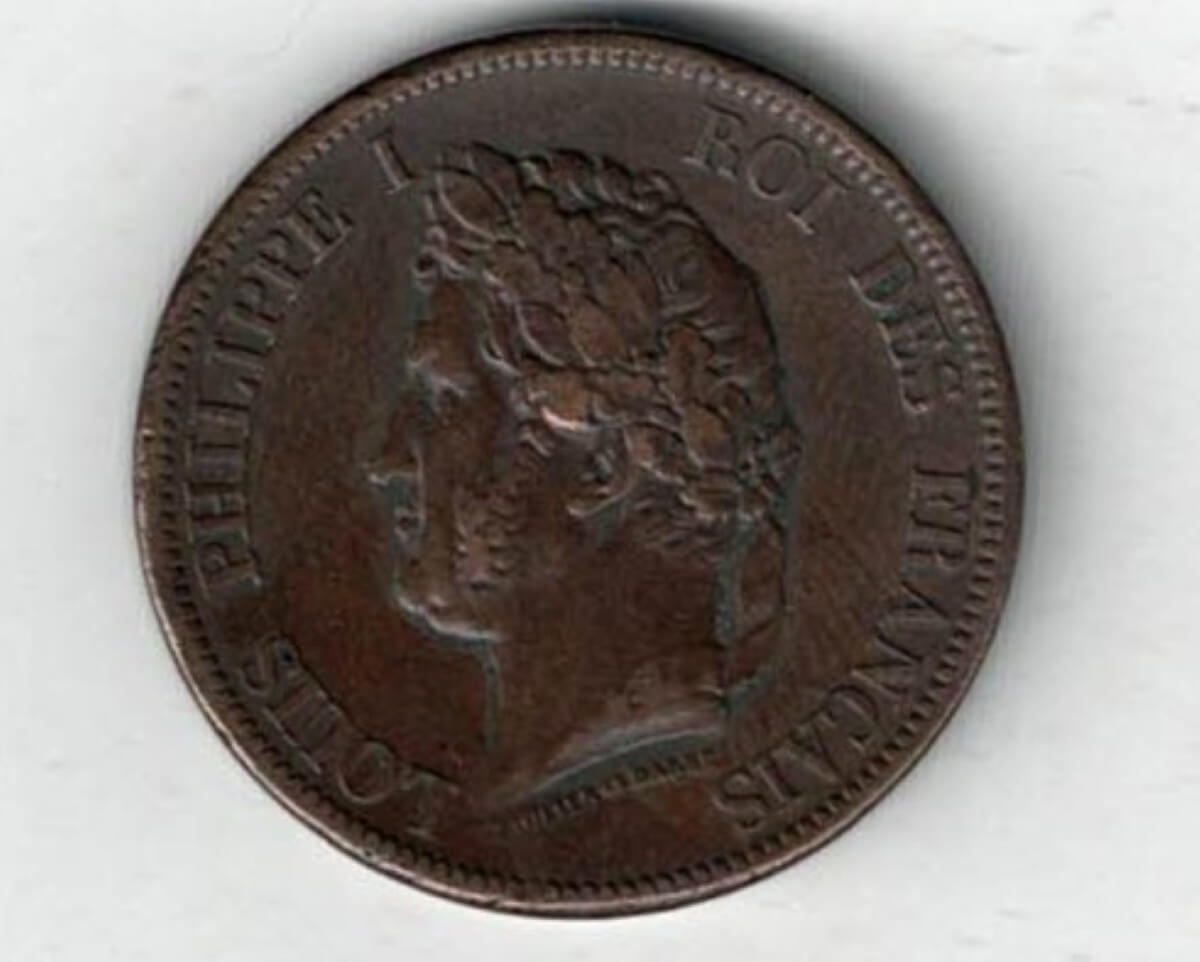 The obverse features the head of Louis-Philippe I facing left. The reverse features the value with wreath and date.