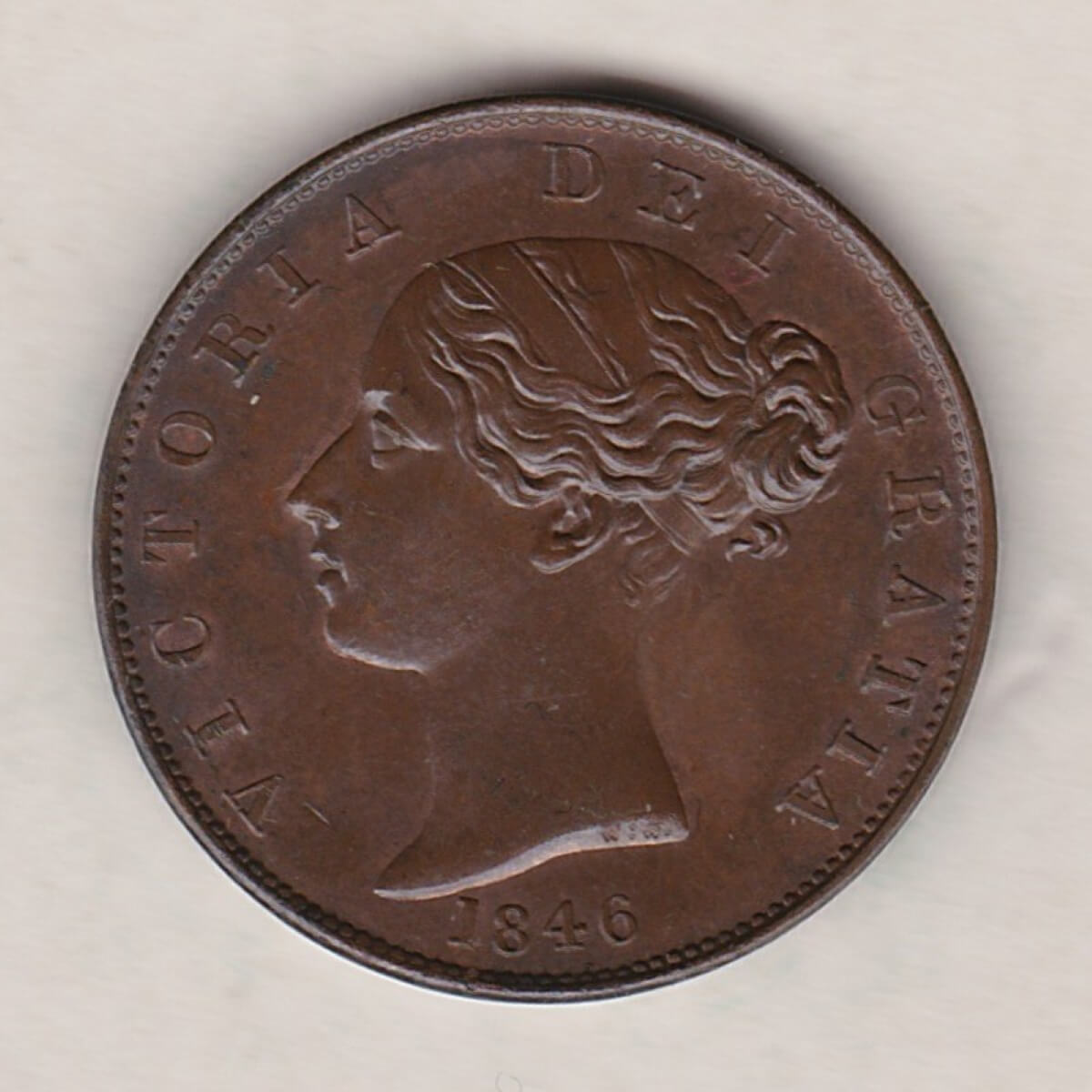 1846 Queen Victoria Copper Halfpenny Coin In Near Mint Condition.