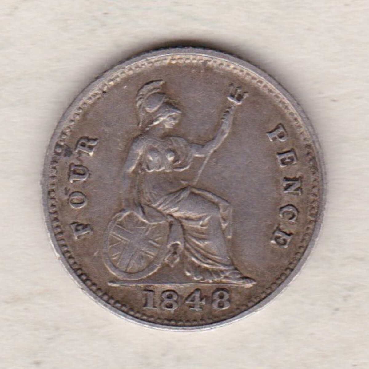 1848 Over 6 Queen Victoria Silver Fourpence Groat Coin In Good Very Fine Or Better Condition.