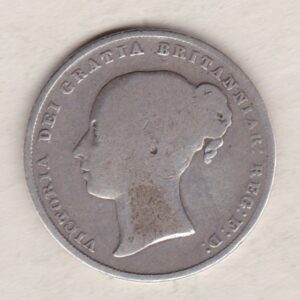 The Young head Shilling is a coin struck in 0.925 silver by the Royal Mint. This second type of the Young head design of Queen Victoria was used on the Obverse of the Shilling between 1839 and 1867. The Reverse of this coin depicts a crown, laurel and oak leaves within an open wreath, and the words “ONE / SHILLING” and “1848”.