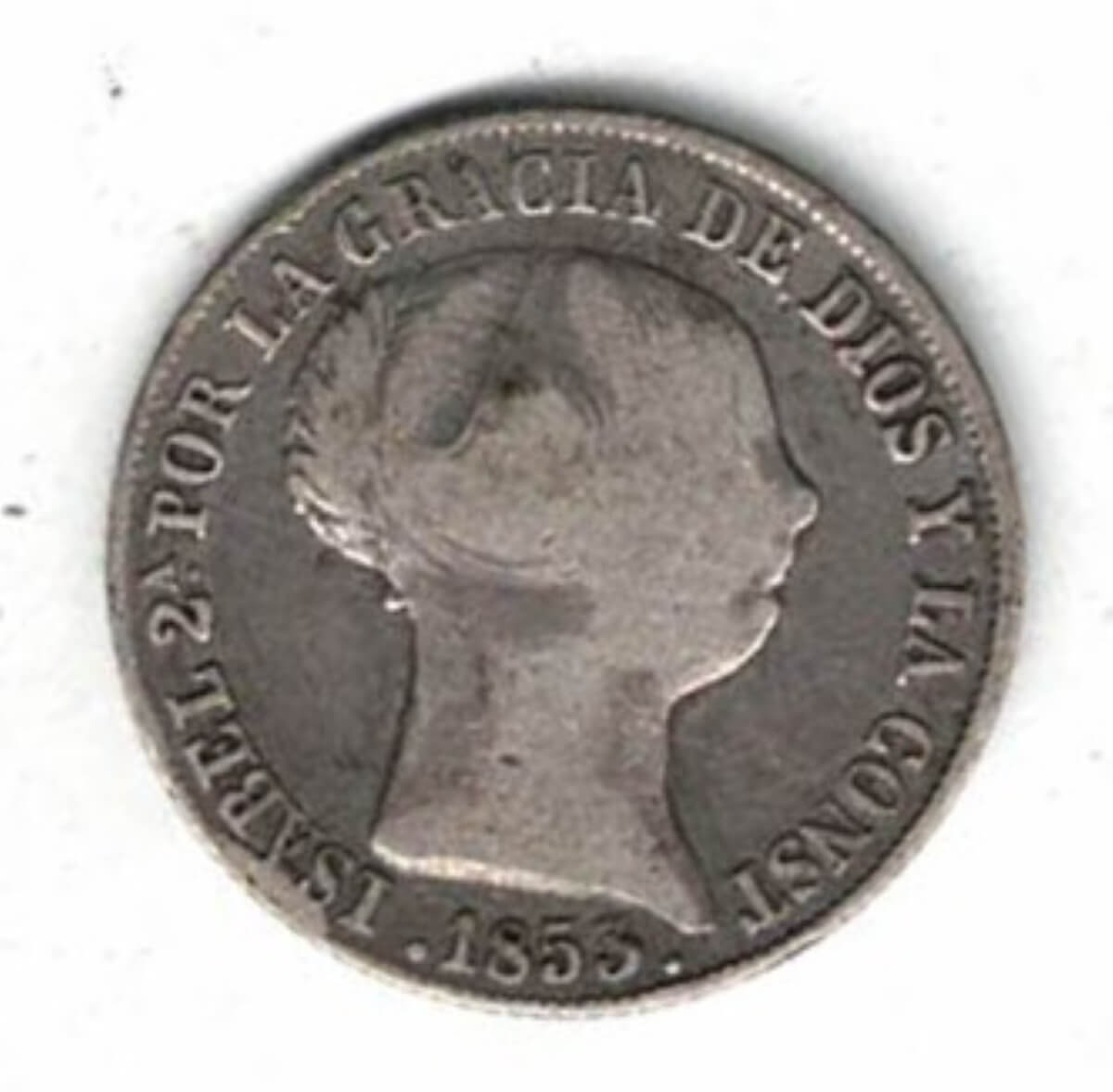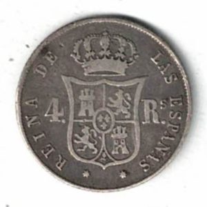 1853 Spain Seven Pointed Star Silver Four Reales Coin In Fine To Good Fine Condition.