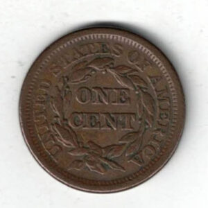 1855 Slanted 5s USA Copper Liberty One Cent Coin In Good Fine Condition.