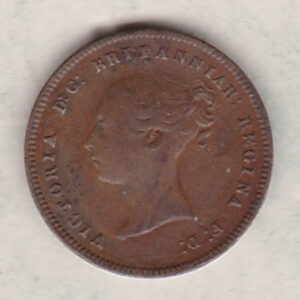 The half-farthing was only struck in copper during Queen Victoria’s reign. In 1842, it was declared legal tender in the United Kingdom, but was demonetized along with other British copper coins on December 31, 1869. At the time it was in circulation, the farthing was worth one-fourth of a penny, or 0.10 pence in today’s money.