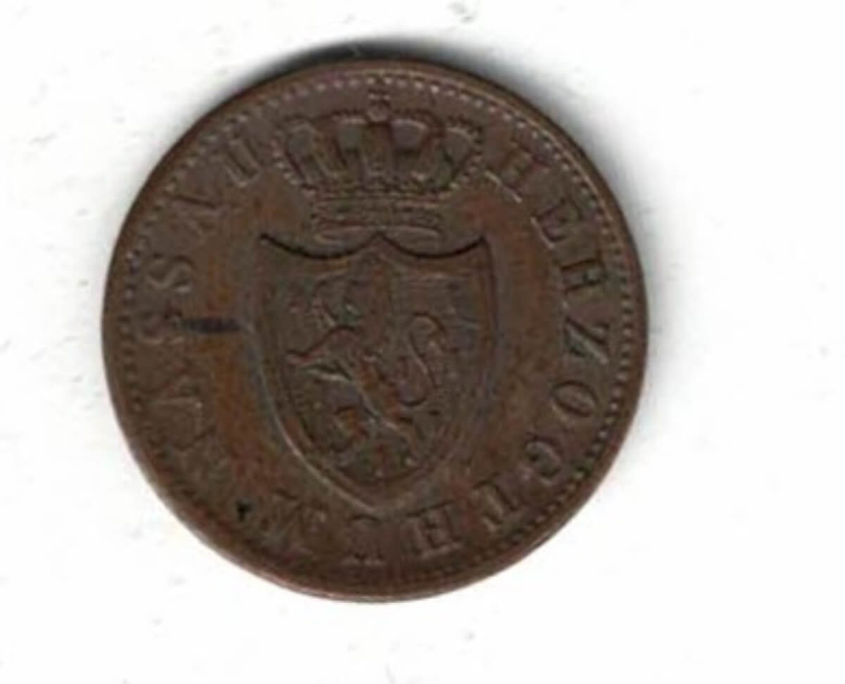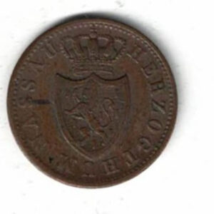 1856 Germany Dutchy Of Nassau Copper One Kreuzer Coin In Good Very Fine Condition.