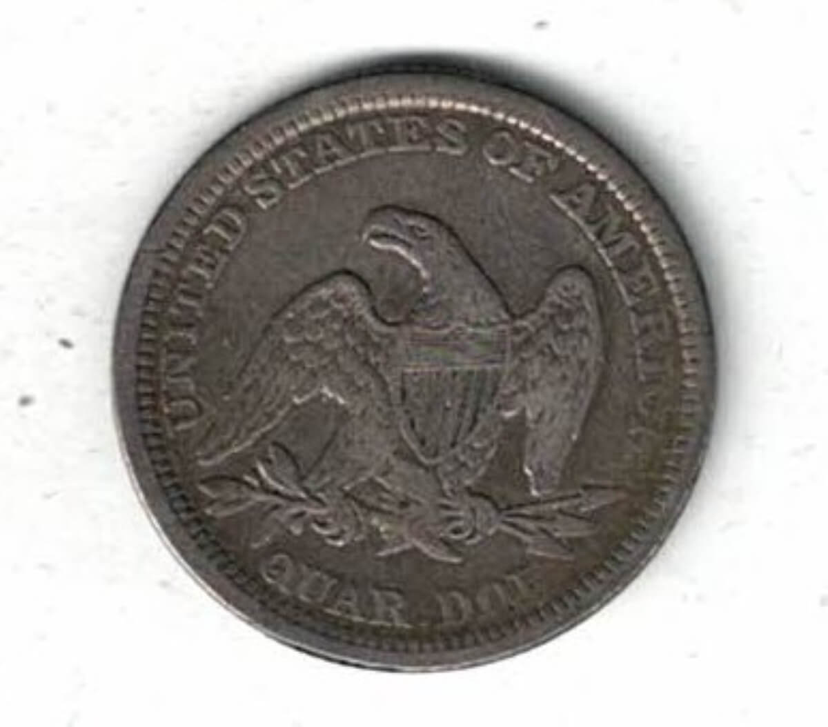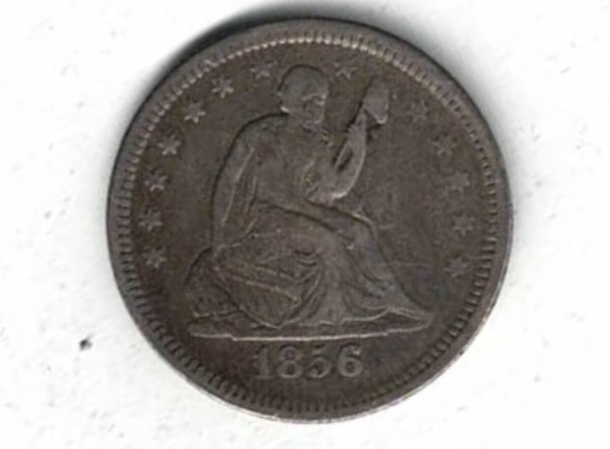 The 1856 USA silver Quarter Dollar coin was struck in Philadelphia and had a mintage of 7,264,000.
