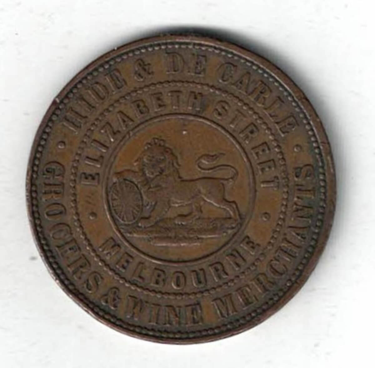 1857 Australia Melbourne Hide And De Carle Copper Penny Token