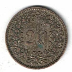1858 B Switzerland Billon Twenty Rappen Coin
