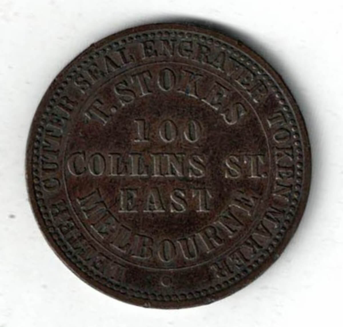 1862 Australia T. Stokes 100 Collins Street East Melbourne. Letter Cutter Engraver Token Maker.