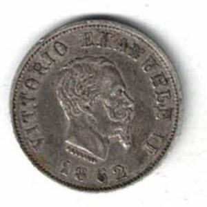 1862 N Italy Silver Fifty Centesimi Coin. The obverse of this coin features the head of Victor Emmanuel II facing right. All coins are in stock.1862 N Italy Silver Fifty Centesimi Coin