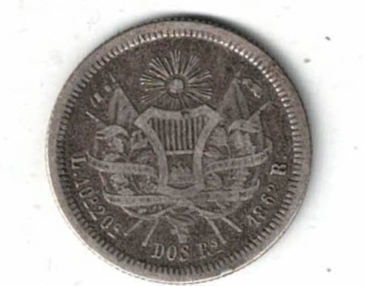 1862 R Guatemala Silver Two Reales Coin In Fine Condition.
