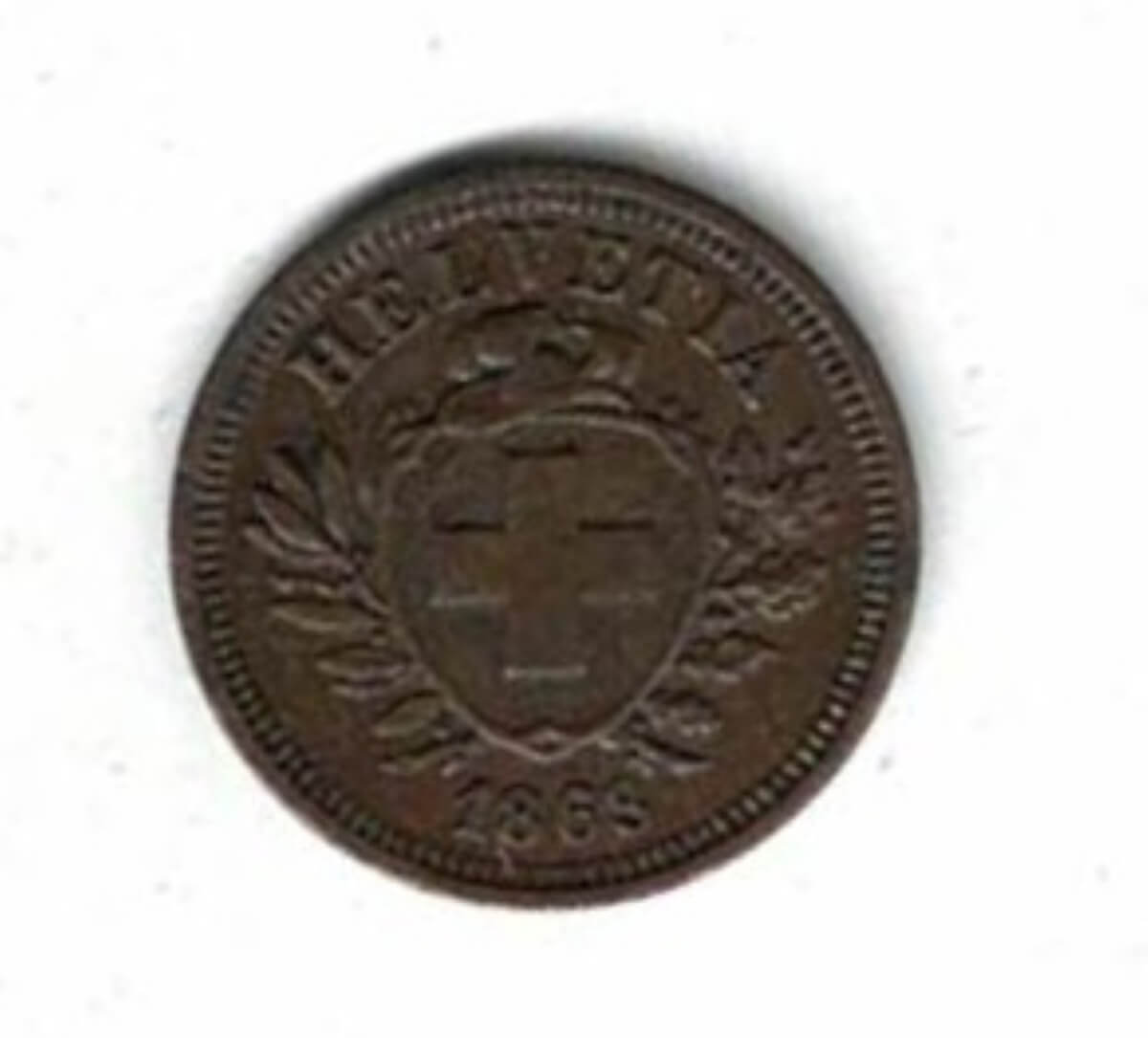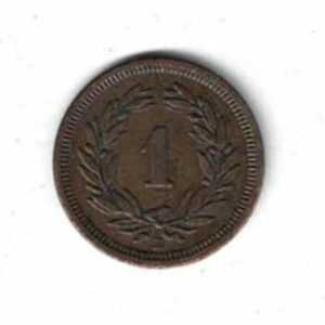 Scarce 1863 B Switzerland Bronze One Rappen Coin In Very Fine Condition,