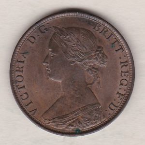1863 Queen Victoria Bronze Halfpenny Coin In Near Mint Condition.