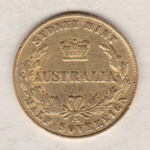 The Australian Half Sovereign is a gold coin struck in 22 carat gold and minted in Sydney by the Royal Mint’s first branch outside of London. It was the first half sovereign to be minted outside of the UK and is considered very collectible. The Obverse features a profile of a young Queen Victoria facing left. She is wearing a wreath of banksia, with the date below. On the Reverse this coin has the word “AUSTRALIA” below a royal crown within a wreath of banksia, with “SYDNEY MINT” above the crown and “HALF SOVEREIGN” under a ribbon. This was the first time the denomination appeared on the reverse of any coin in the Empire’s history.