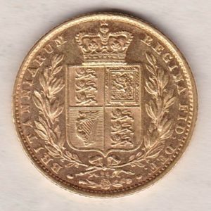 Often referred to as the ‘Shield back sovereign’ the reverse shield design is popular amongst collectors as it is was only used between the dates 1838 and 1887 before the more common St George & Dragon design.