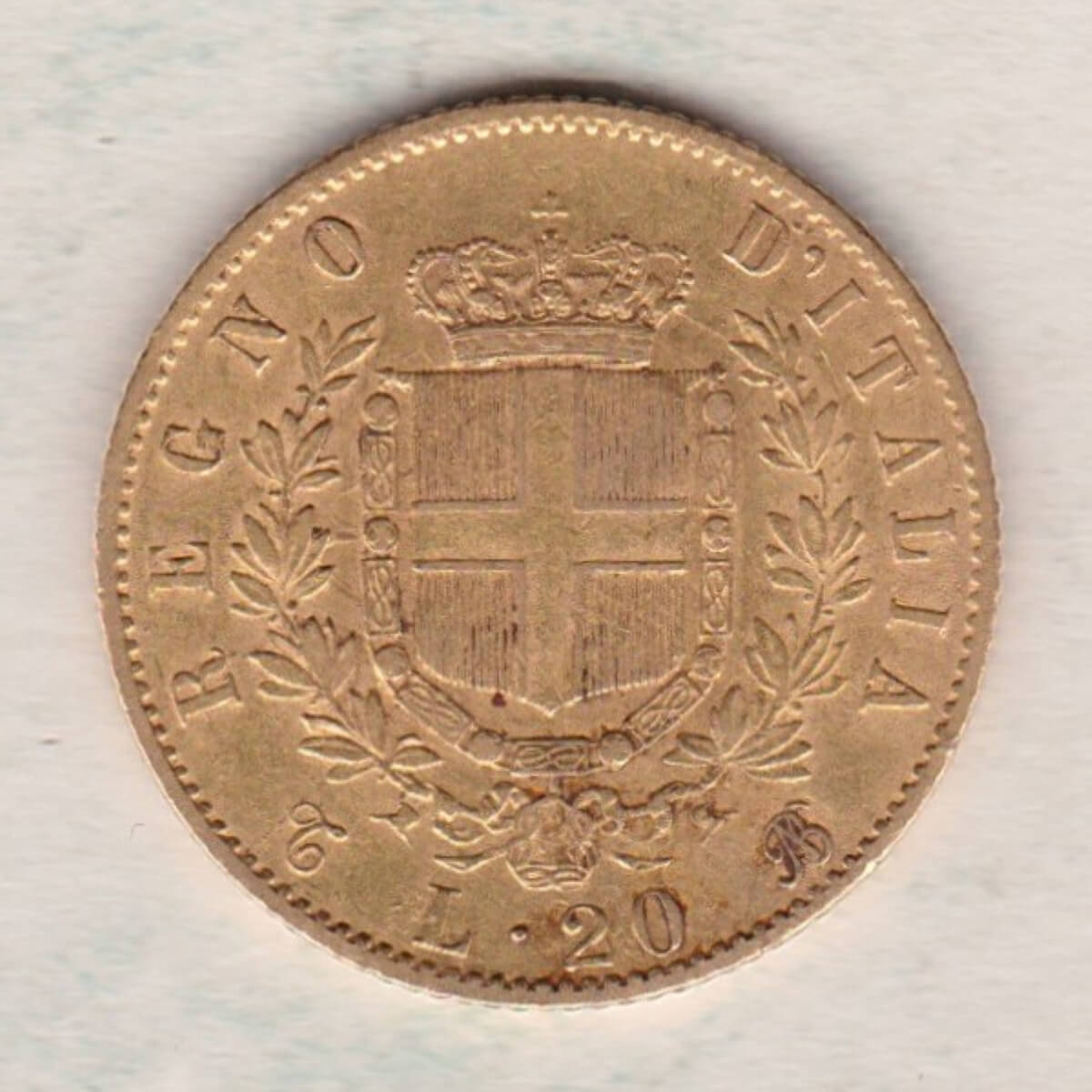 1865 T BN Gold Italy Twenty Lire Coin In Near Extremely Fine Condition.