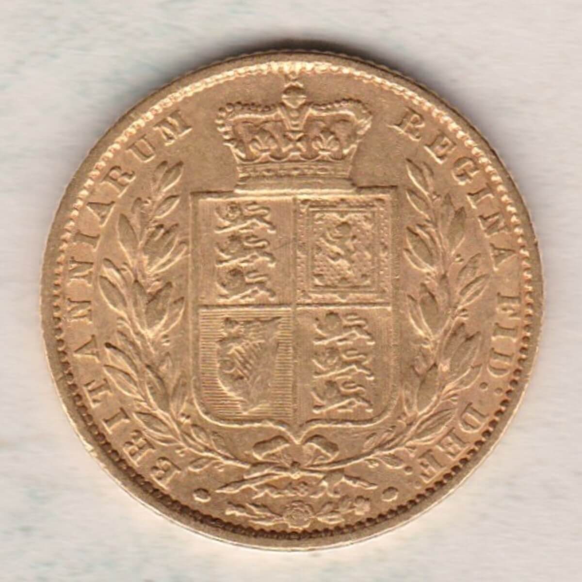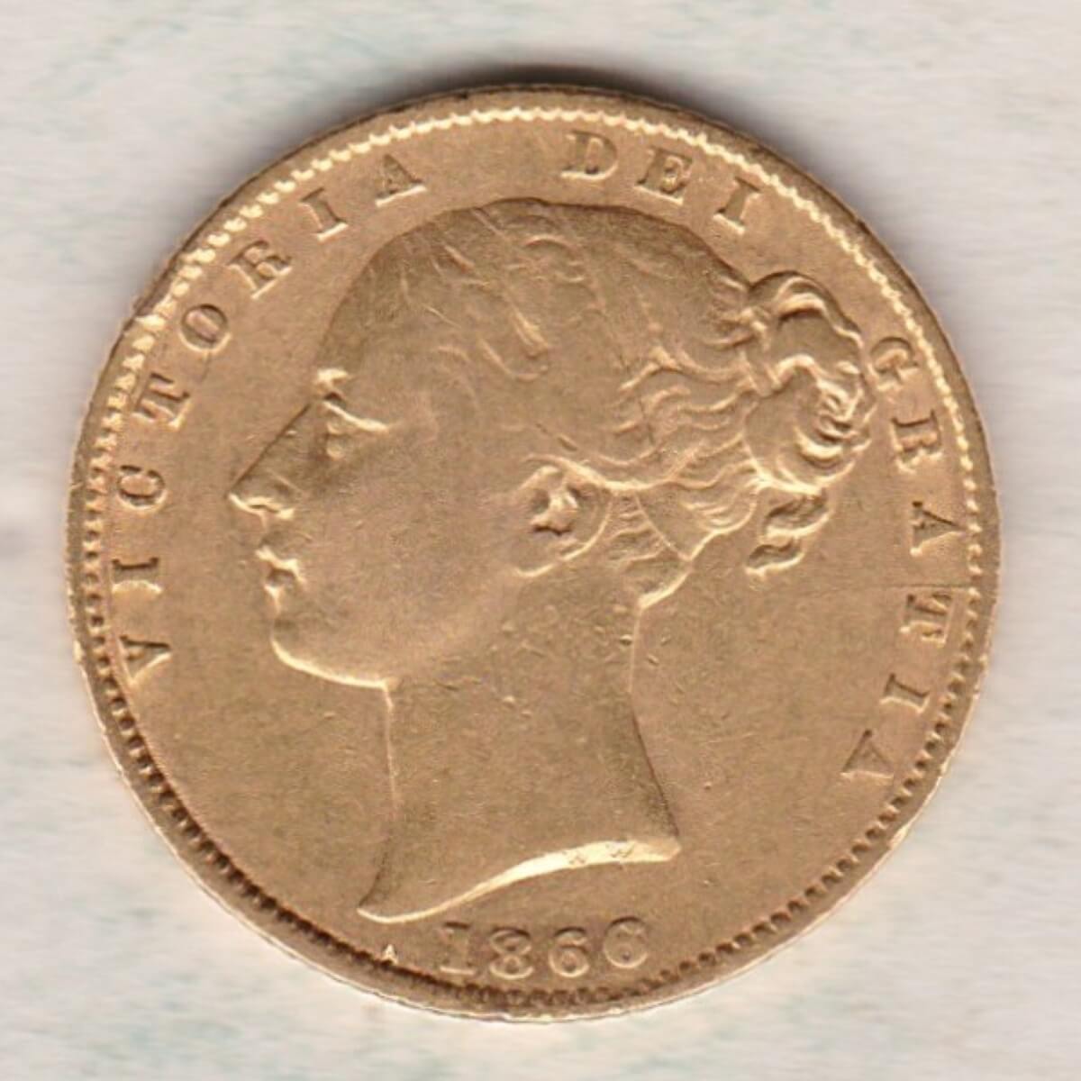 1866 Victoria Shield Back Gold Full Sovereign Coin In Near Very Fine Condition.