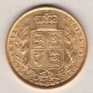 Often referred to as the ‘Shield back sovereign’ the reverse shield design is popular amongst collectors as it is was only used between the dates 1838 and 1887 before the more common St George & Dragon design.