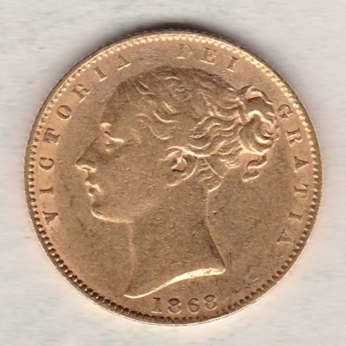 1868 Victoria Shield Back Gold Full Sovereign Coin In Very Fine Condition.