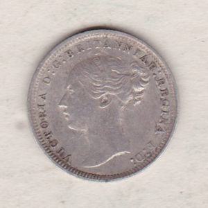The 1868 Threepence is a coin struck in 0.925 silver by the Royal Mint. This Young head design of Queen Victoria was used on the Obverse of the threepence between 1838 and 1887. The Reverse features a crowned denomination dividing the date, all within an oak wreath.