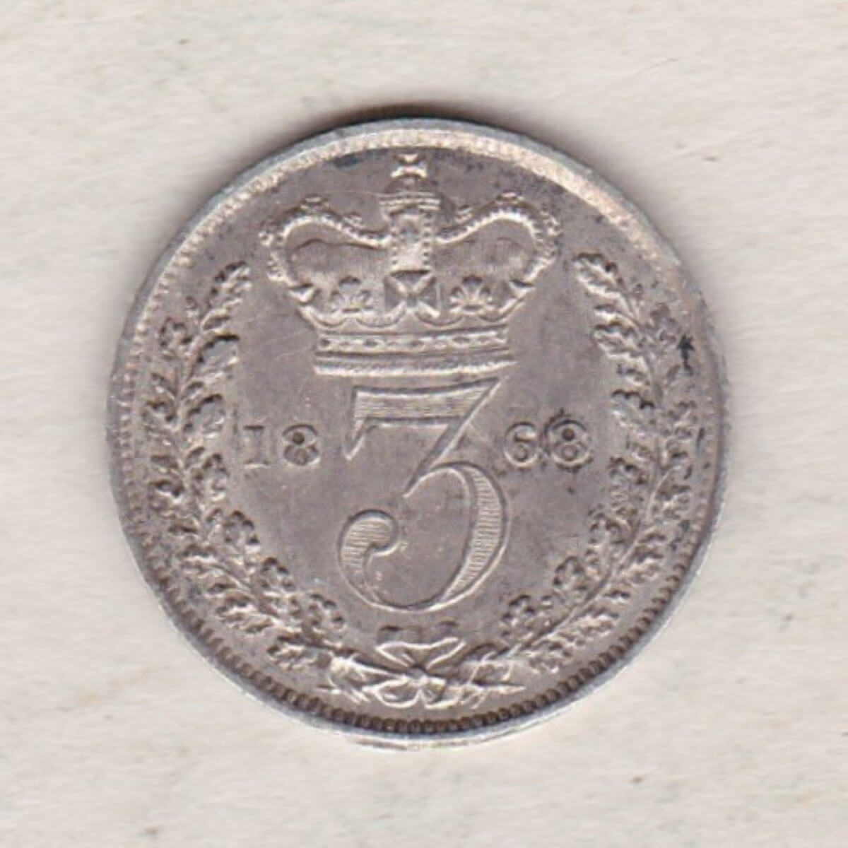 This 1868 threepence coin had a mintage figure of 1,457,280.