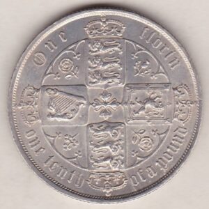 The florin was introduced in 1849 as part of the British coinage’s move towards decimalization. This coin was worth 1/10th of a pound or 2 shillings. It was more commonly known as the 2 shilling coin. It is equivalent to the current ten pence coin.