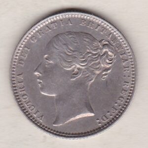 The Young head Shilling is a coin struck in 0.925 silver by the Royal Mint. This third type of the Young head design of Queen Victoria was used on the Obverse of the Shilling between 1867 and 1879. The Reverse of this coin depicts a crown, laurel and oak leaves within an open wreath, and the words “ONE / SHILLING” and “1872” with die number 24 above the date.